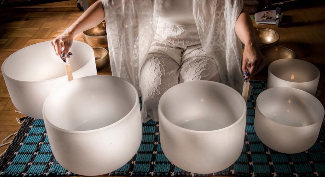 J'utilise le bol chantant de cristal pour harmoniser et apaiser les corps.